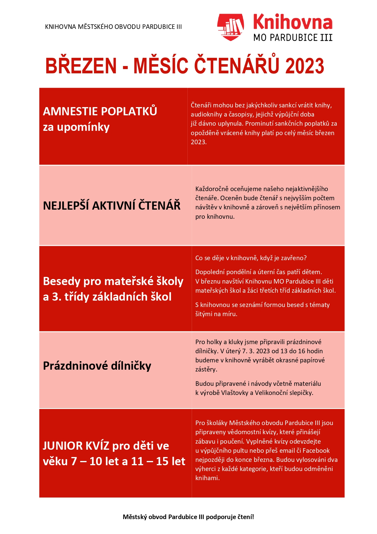 Knihovna MO Pardubice III, Jana Zajíce 983, 530 12 Pardubice