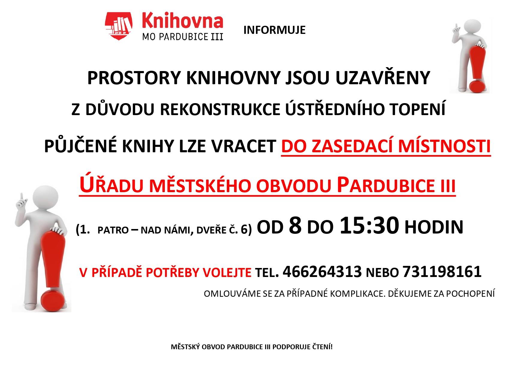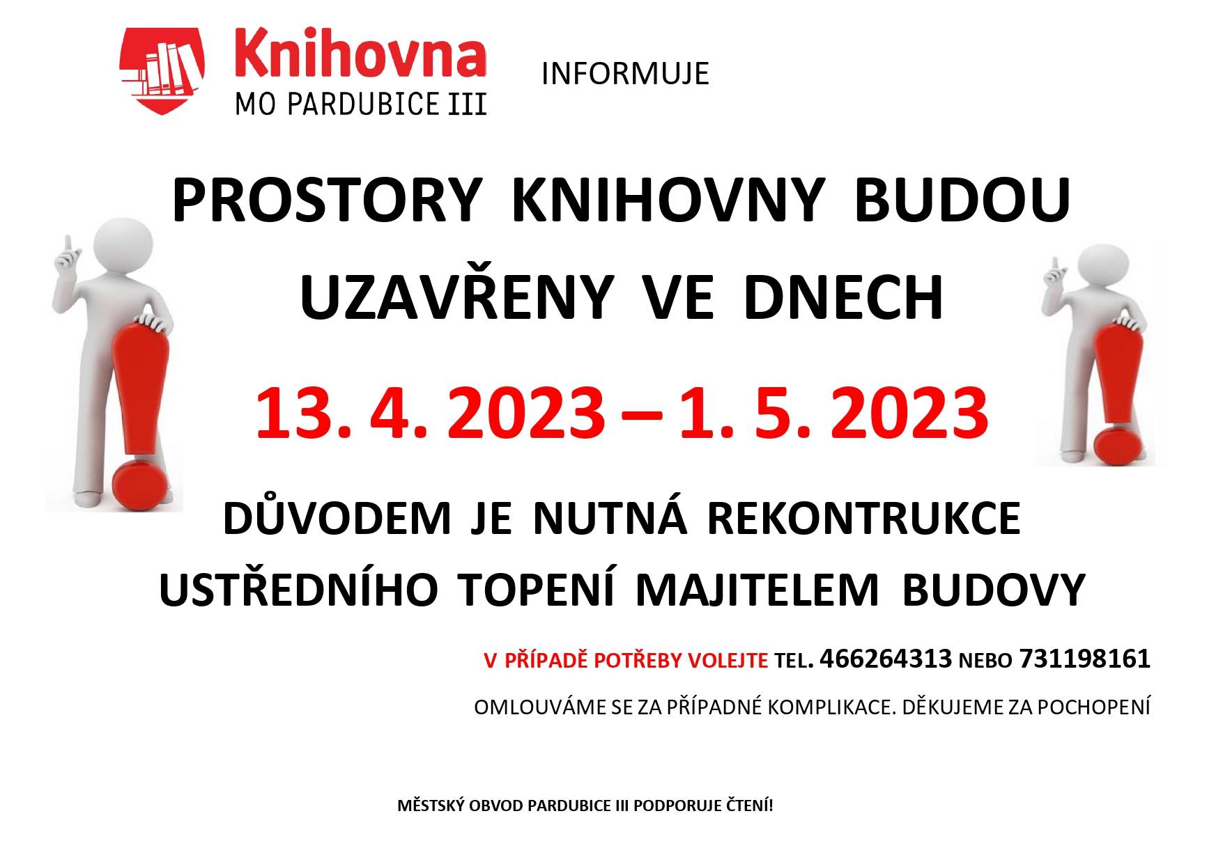 Uzavření knihovny 13.4.-1.5.2023 (rekontrukce ústředního topení)
