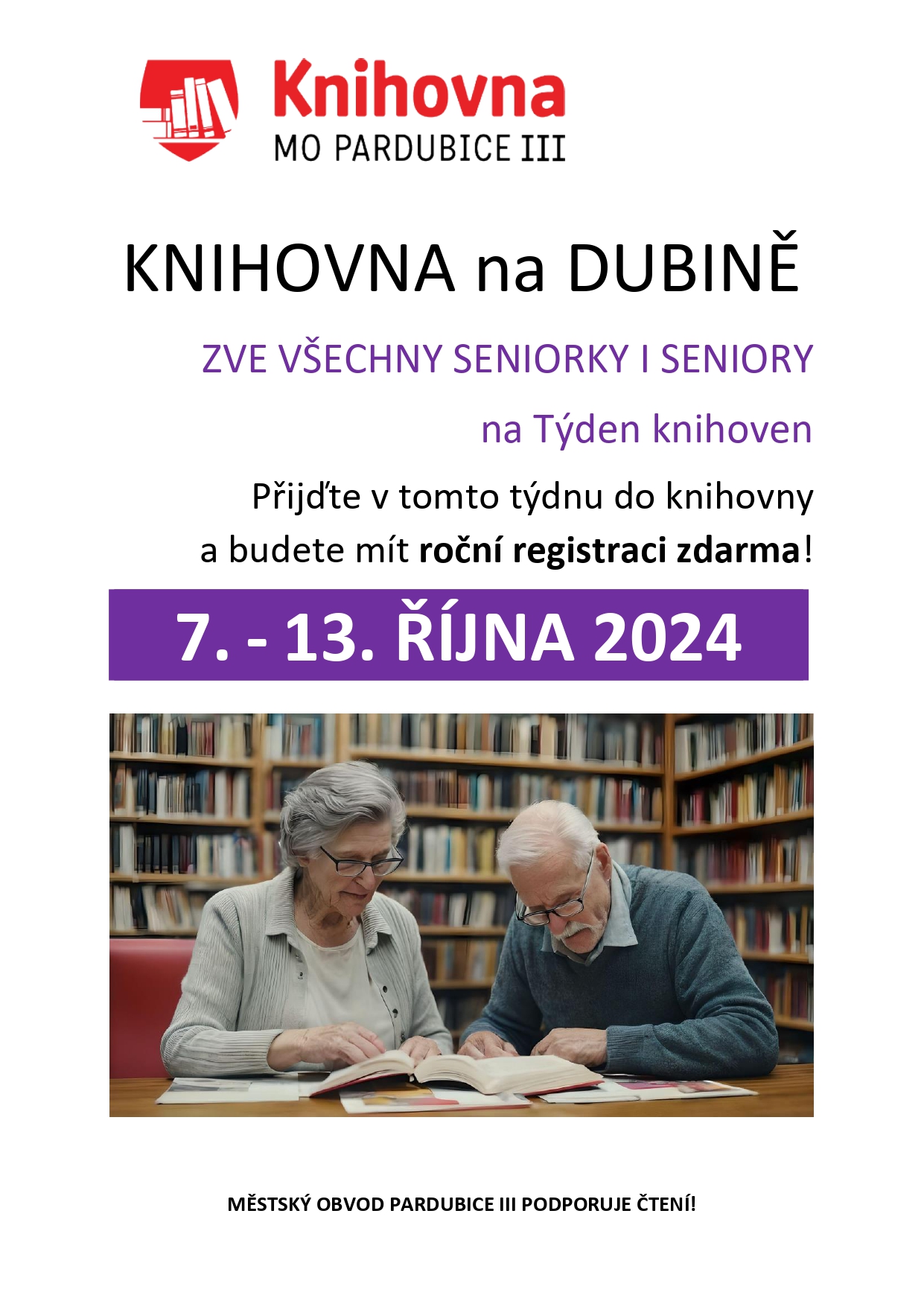 Týden knihoven 7.10.-.13.10.2024 – registrace seniorů zdarma