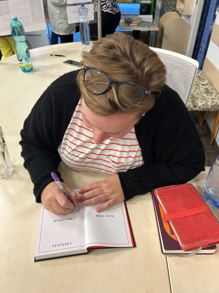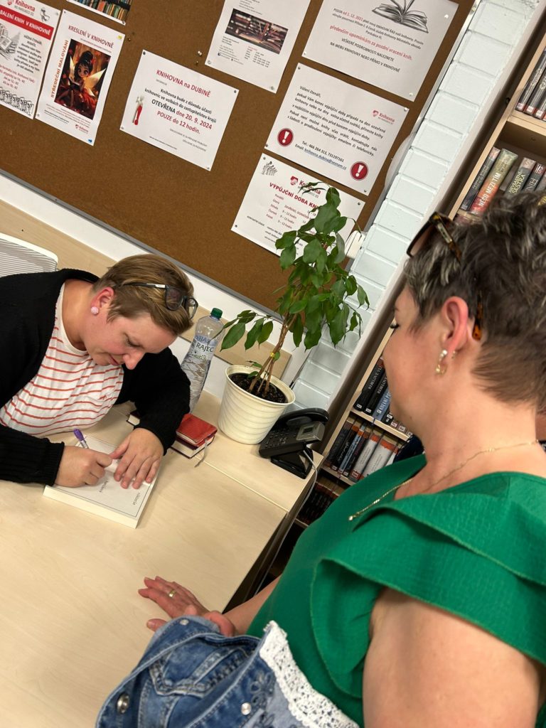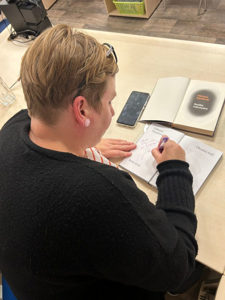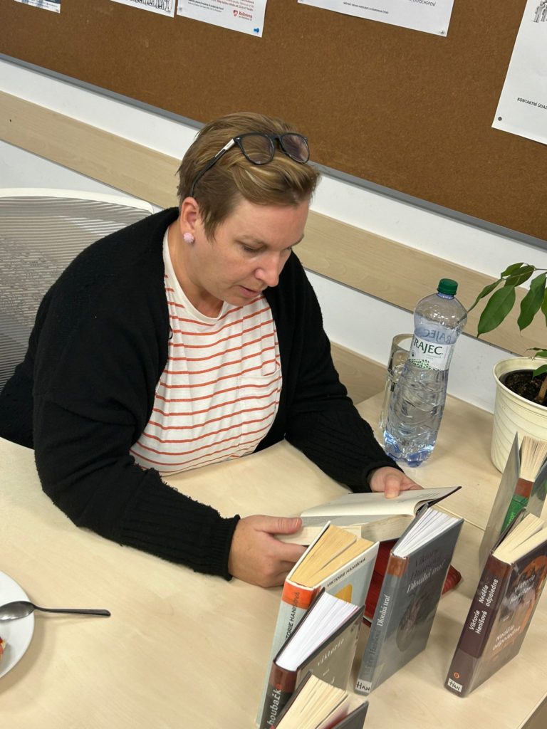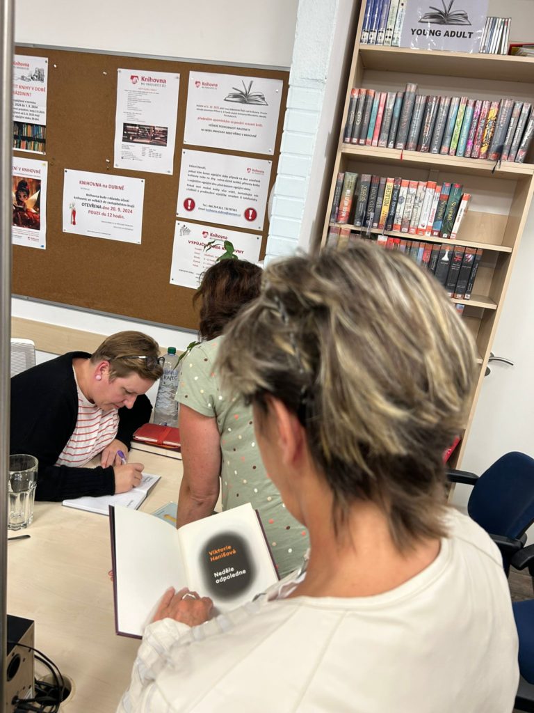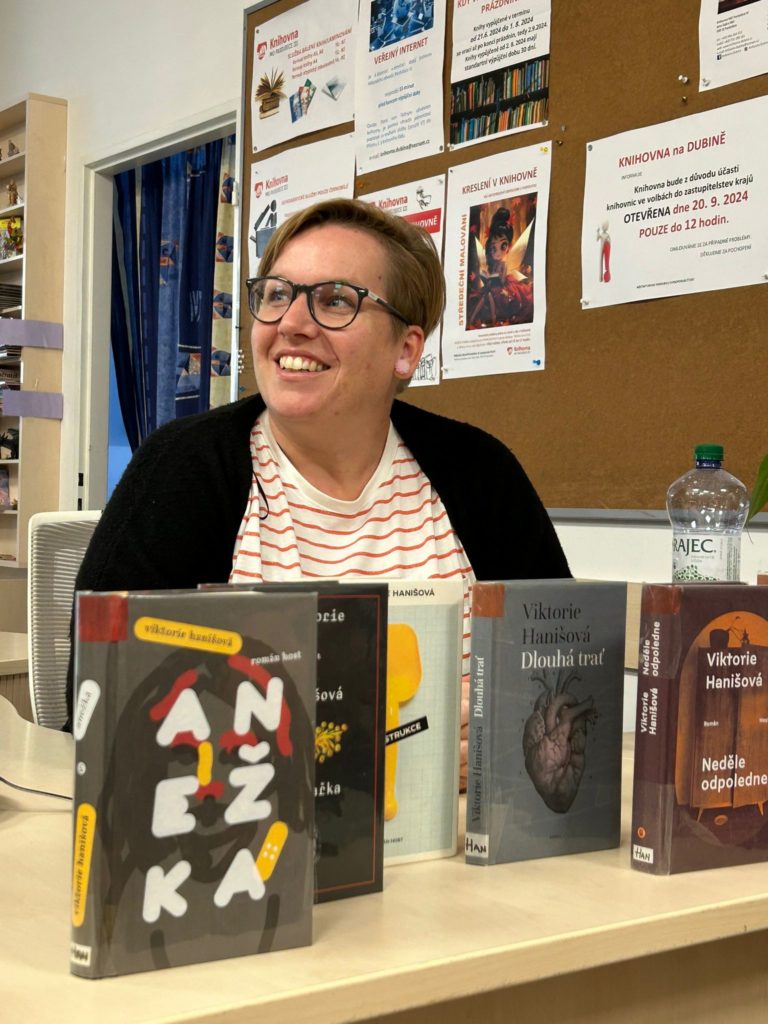 Bylo úterý 24. 9. 2024 a ze stověžaté Prahy k nám zavítala spisovatelka a překladatelka Viktorie Hanišová. Úžasná energická dáma okouzlila přítomné čtenáře a svým vyprávěním o psaní i životě navodila pohodovou atmosféru podvečera. Děkujeme všem, kteří tu s námi byli.
