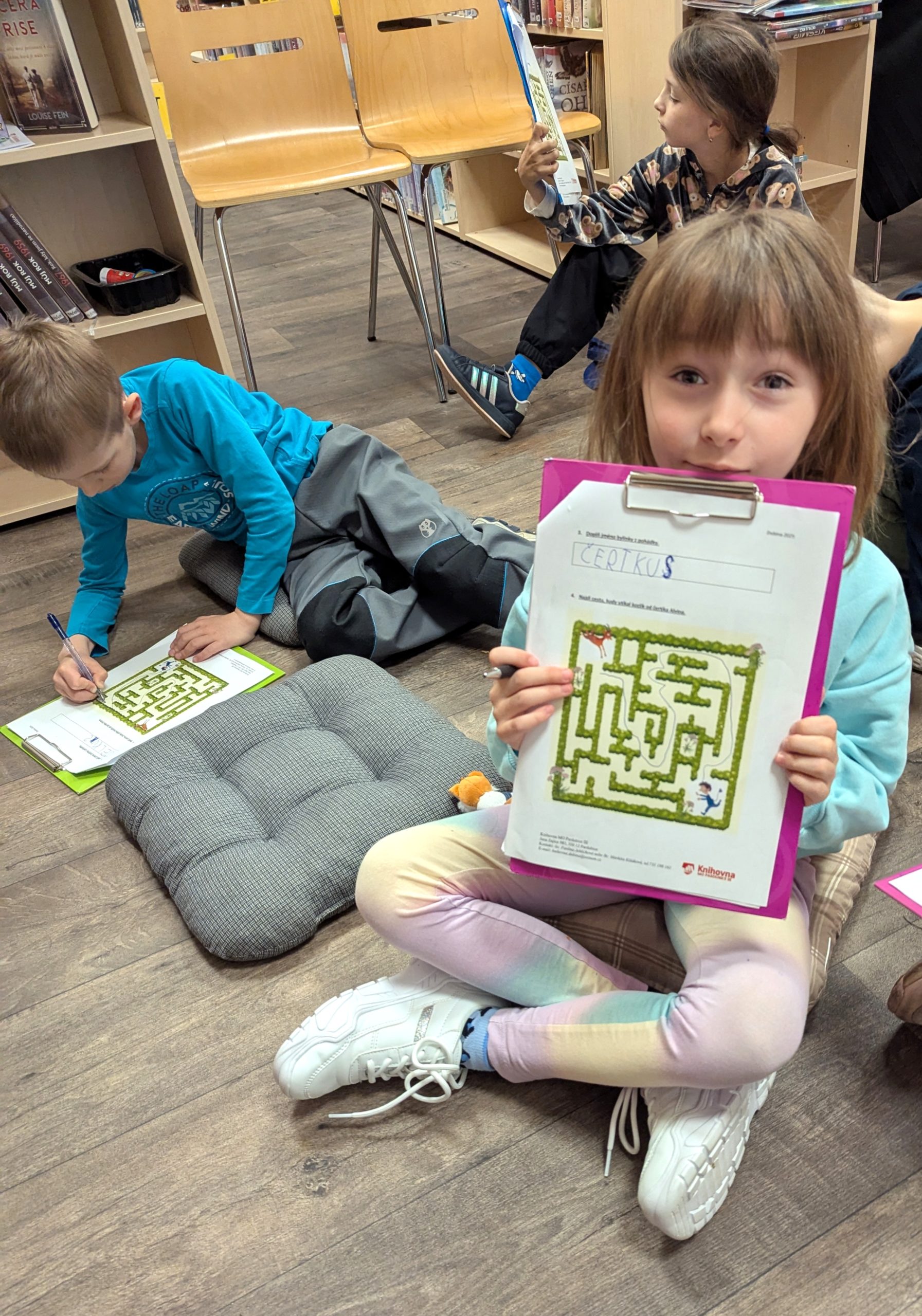 Čtení, prohlížení knih i trochu zahradničení přinesla vzdělávací beseda, kde hlavní úlohu hrají čertovské bylinky. Žáci 1. C ZŠ Dubina v rámci projektu SKIPu „Už jsem čtenář“ s námi ochránili království čertkusem či honili kozlíka. :)