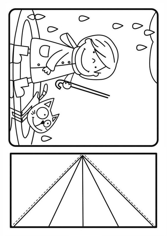 - Nejprve si připravíme vzor panáčka nebo panenky s deštníkem, barevné pastelky či fixy, nůžky a lepidlo.