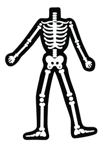 1. Připravíme si vzor kostlivce, nůžky a lepidlo.