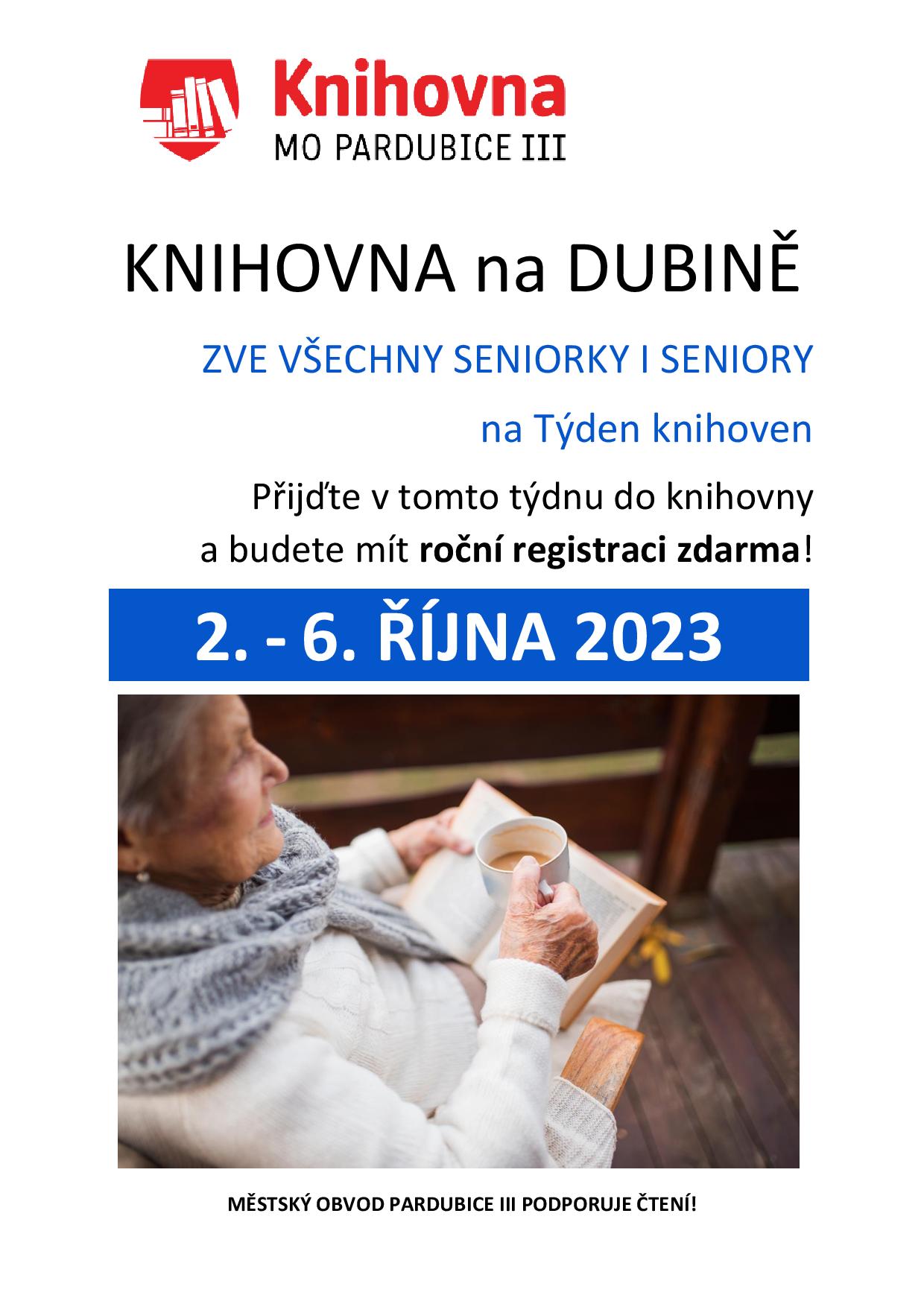 KNIHOVNA na DUBINĚ ZVE VŠECHNY SENIORKY I SENIORY na Týden knihoven 2. 10. – 6. 10. 2023.