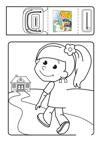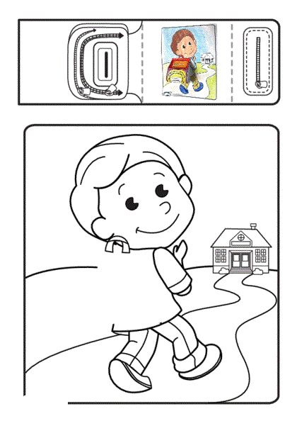 2. Vybarvíme si pozadí, školáčka a následně i aktovku podle své fantazie.
