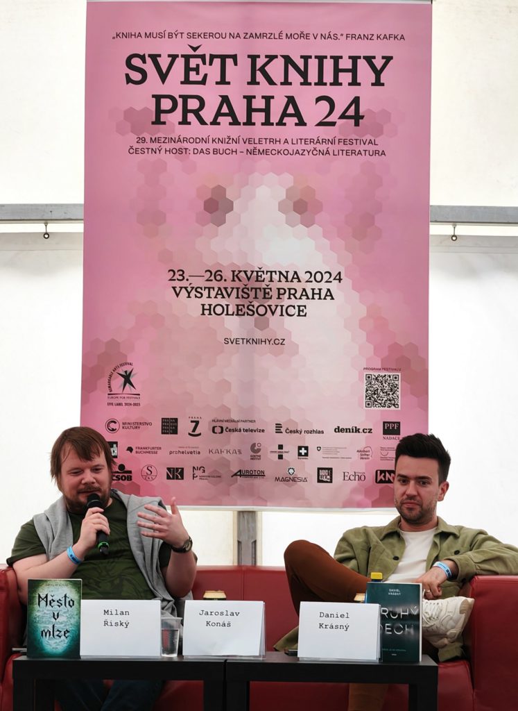 24. 5. 2024 SVĚT KNIHY 2024 Knihy českých autorů u nás čtenáři milují a je tedy potřeba vyhledávat nové talenty na literární scéně. Nás zaujala beseda „Mysteriózní thrillery od českých autorů“. Spisovatelé Jaroslav Konáš a Daniel Krásný překvapili a představili svá nová díla Město v mlze a Druhý dech. Jistě v budoucnu o nich uslyšíme.