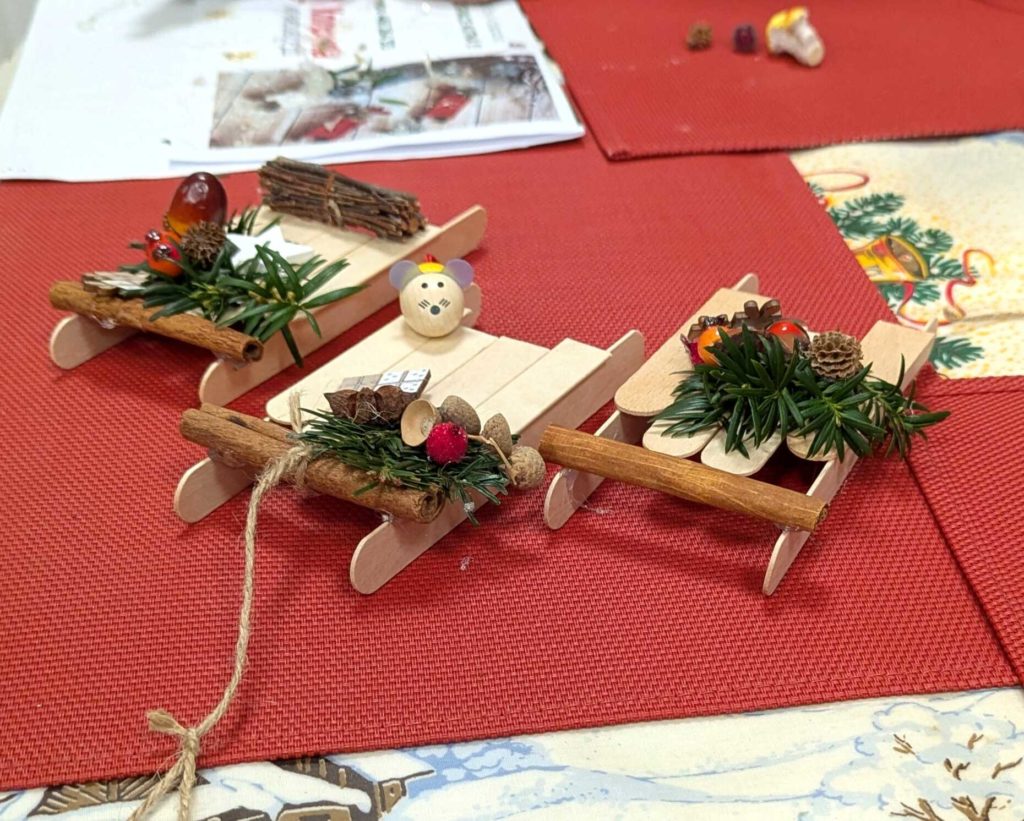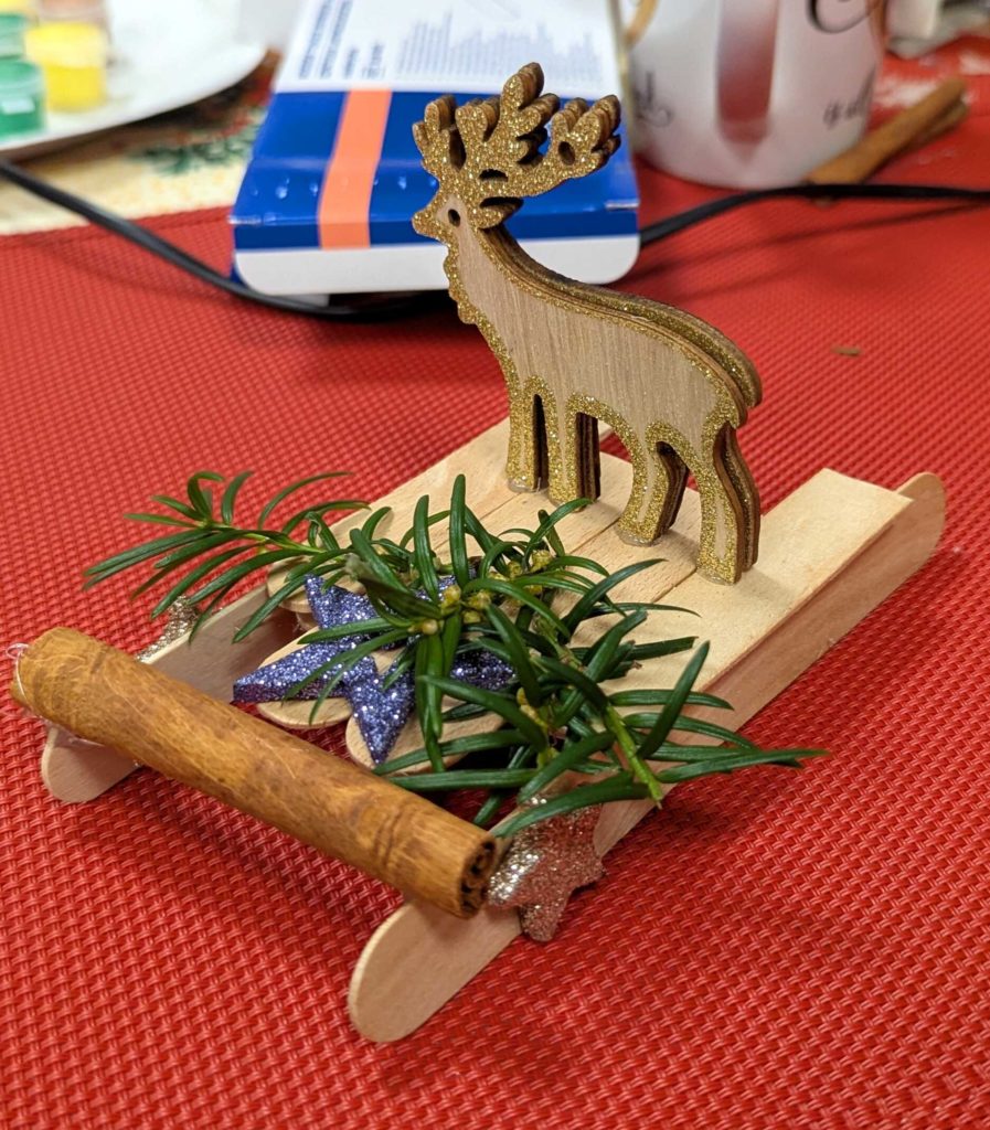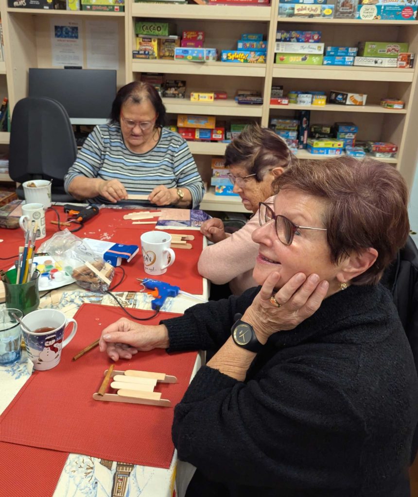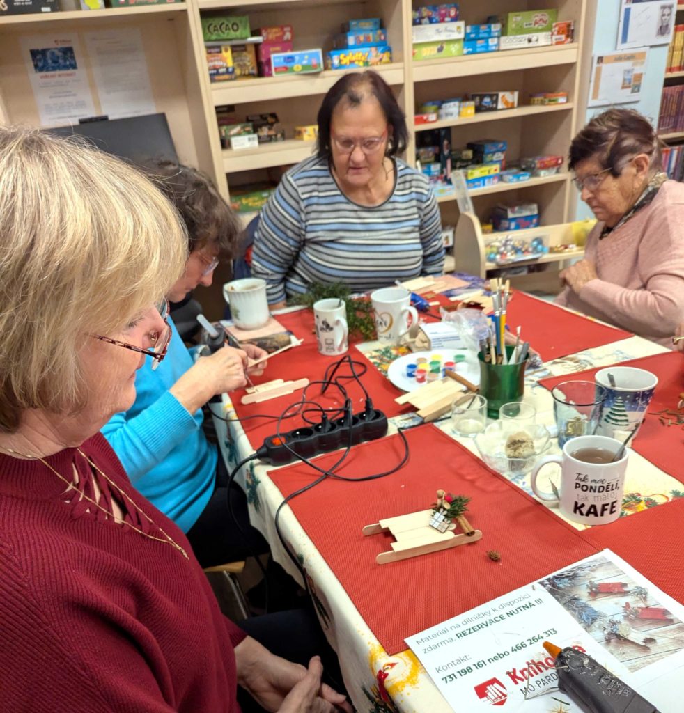 Krásné předvánoční setkání s našimi seniory. Vyráběli jsme dřevěné vánoční sáňky. Příjemná atmosféra s vůní kávy a čaje pomohla vytvořit kouzelnou atmosféru.