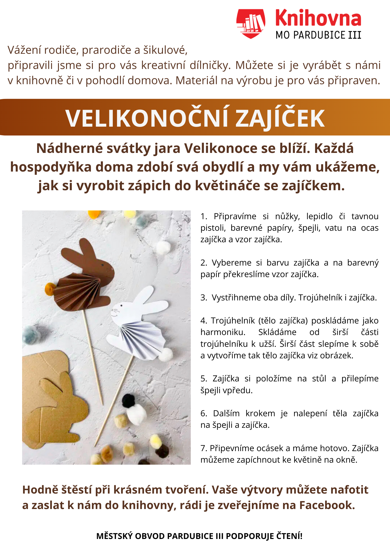 7. Připevníme ocásek a máme hotovo. Zajíčka můžeme zapíchnout ke květině na okně.