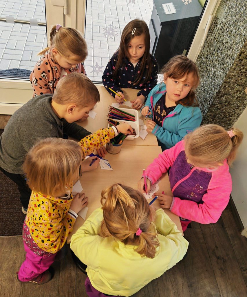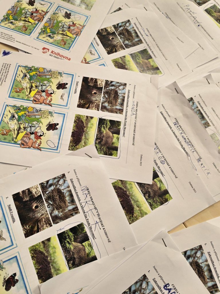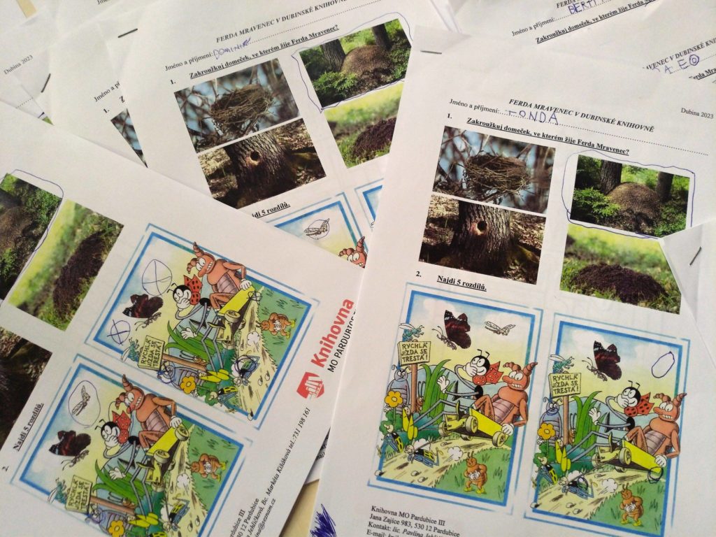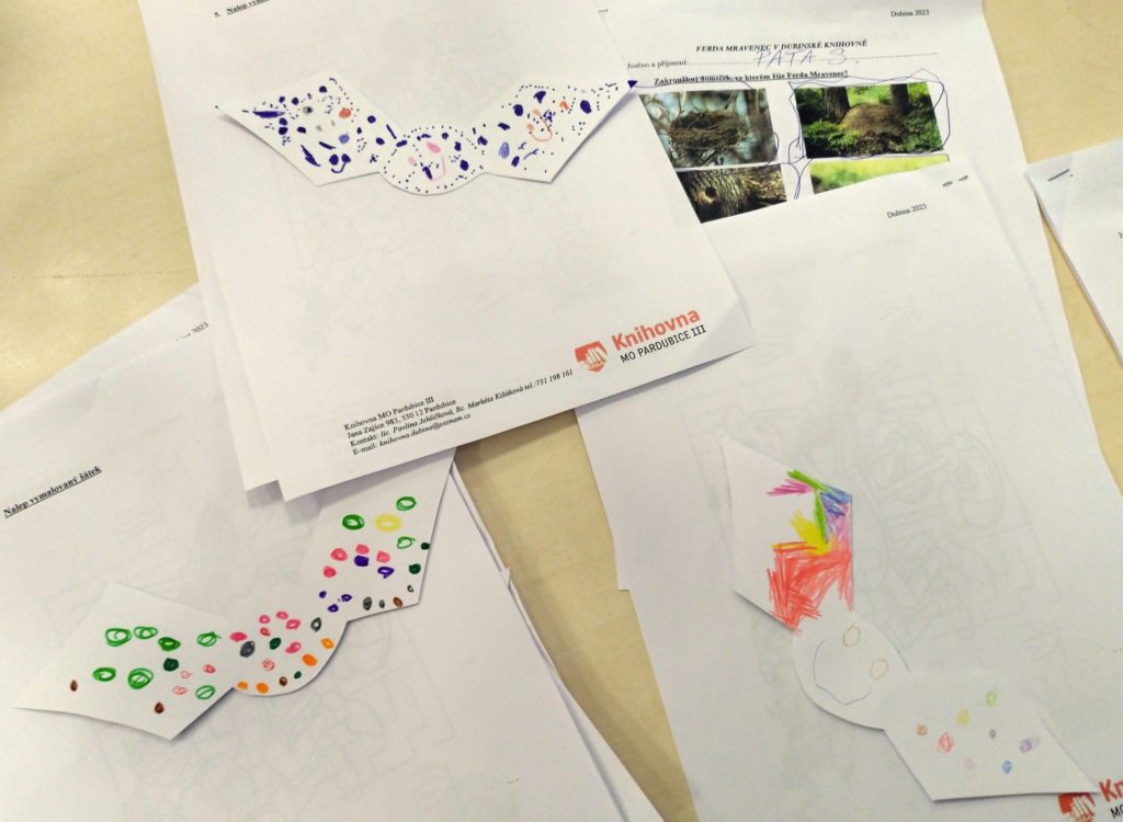Ferda Mravenec přilákal k nám do knihovny i Mateřskou školu Srdíčko, třídu Žabiček. S dětmi jsme pročítali knihu Ferdy Mravence, vyplňovali pracovní listy a nakonec děti vyrobily krásné barevné šátky.