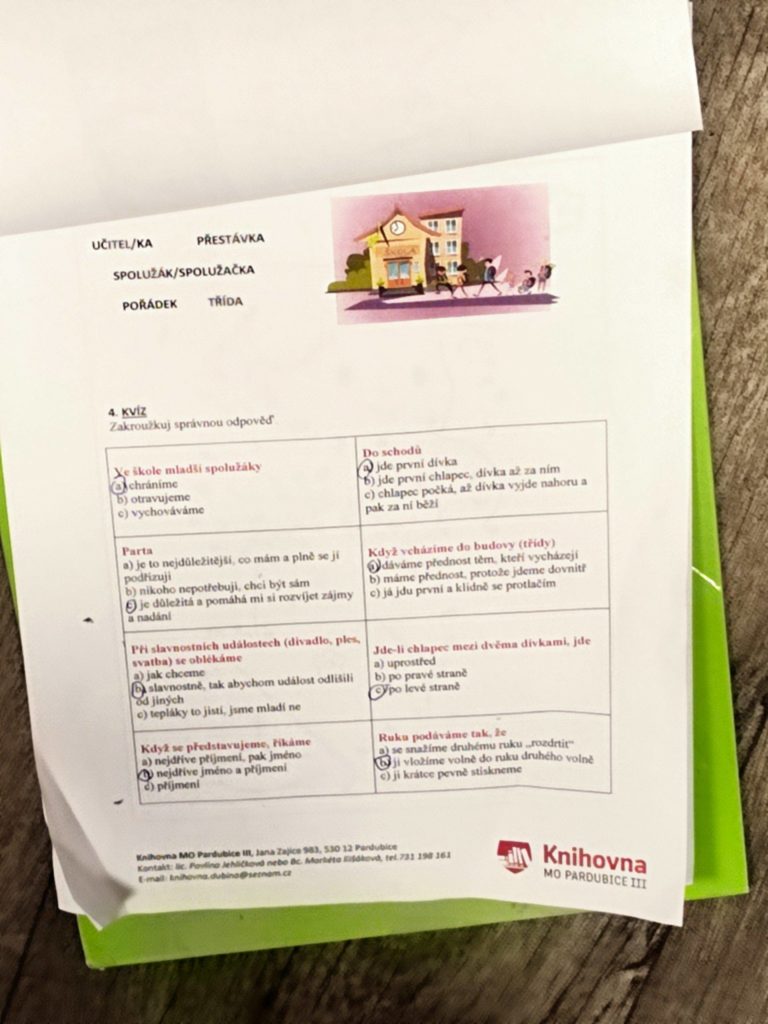 Knihovna objevuje neustále krásné a zajímavé knihy, kterými se nechává inspirovat. Jednou z takovýchto knih je i kniha Ladislava Špačka, Etiketa pro holky a kluky. Tentokráte jsme knihu využili v rámci vzdělávacích besed pro žáky základních škol. Vzdělávací besedu s názvem „Se slušností nejdál dojdeš“ si k nám přišli vyslechnout žáci třídy 3. C, ZŠ Dubina.
