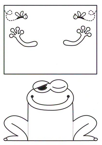 2. Nejprve si libovolně vybarvíme žabáčka Leopolda včetně pozadí na kterém sedí. 3. Poté žabáka opatrně vystřihneme a nalepíme zadními nožičkámi k pozadí. 4. Máme hotovo. Žabák Leopold vám může děla společnost doma v pokojíčku :). |