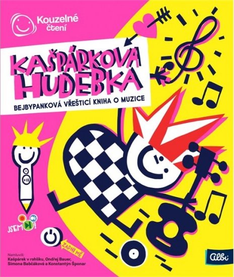 Na 16 stranách bejbypankové vřeštící učebnice Kašpárkova hudebka z edice Kouzelné čtení se dozvíš mnoho z historie i teorie hudby, ale také rozezníš prdlafon, poslechneš si muzikantské vzkazy od slavných kámošů Kašpárka a ve velkém kvízu zjistíš, na jaký nástroj se máš naučit.